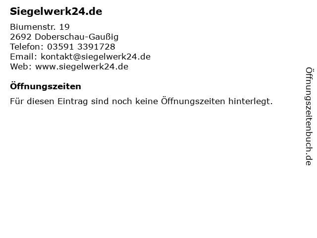 | Öffnungszeiten Siegelwerk24.de in Doberschau-Gaußig anzeigen | |