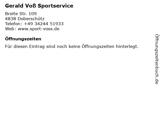 | Öffnungszeiten Gerald Voß Sportservice in Doberschütz anzeigen | |