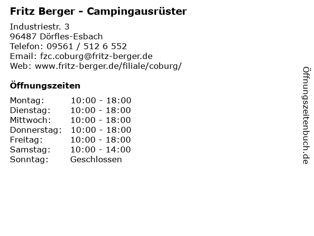Branchen & Suchbegriffe zu Fritz Berger - Campingausrüster:berger, campingausrüster, caravaning, coburg, fahrzeugcenter, freizeitmarkt, fritz, märz, oktober |