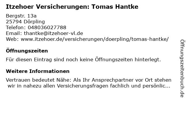 | Itzehoer Versicherungen: Tomas Hantke anrufen | |