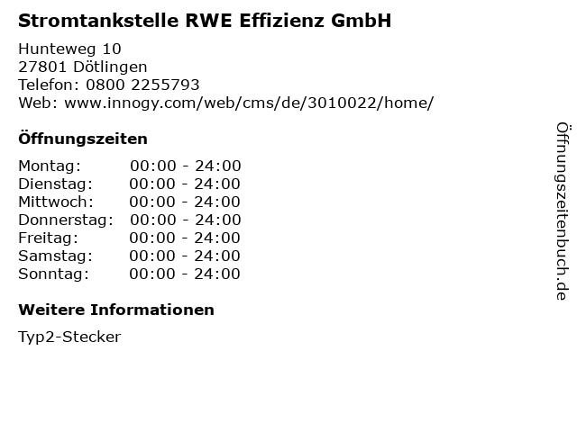 Stromtankstelle RWE Effizienz GmbH in Dötlingen: Telefonnummer, Öffnungszeiten und Adresse