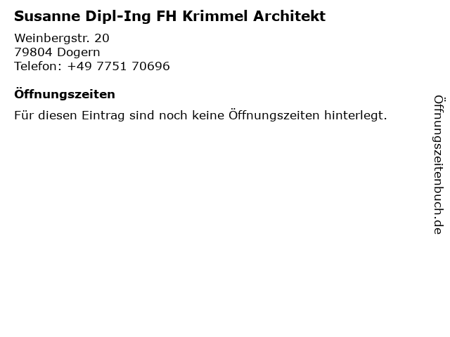 | Susanne Dipl-Ing FH Krimmel Architekt anrufen | |