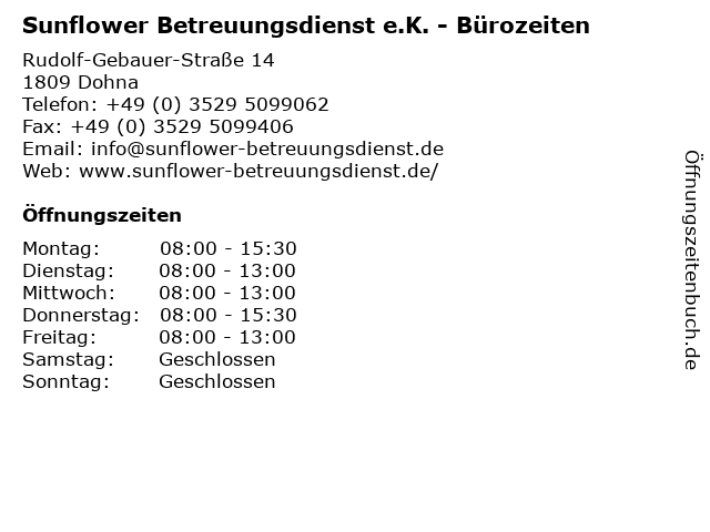 Branchen & Suchbegriffe zu Sunflower Betreuungsdienst e.K. - Bürozeiten:betreuung, betreuungsdienst, bürozeiten, e.k., einkaufen, hilfe, kurse, pflege, sunflower |