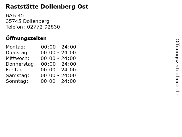 | Öffnungszeiten Raststätte Dollenberg Ost in Dollenberg anzeigen | |