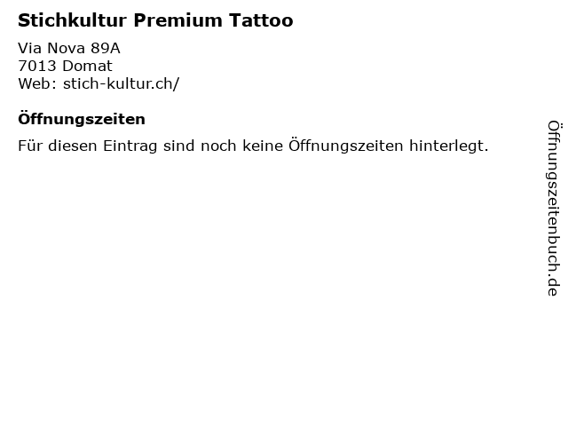 | Öffnungszeiten Stichkultur Premium Tattoo in Domat anzeigen | |