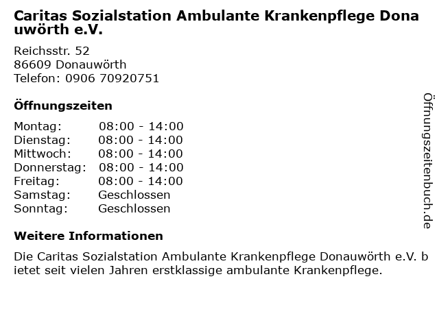 Branchen & Suchbegriffe zu Caritas Sozialstation Ambulante Krankenpflege Donauwörth e.V.:ambulante, caritas, e.v., krankenpflege, sozialstation |