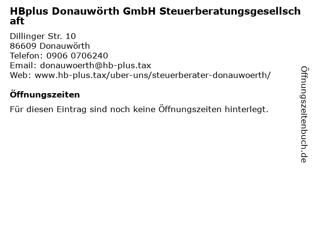 | HBplus Donauwörth GmbH Steuerberatungsgesellschaft anrufen | |