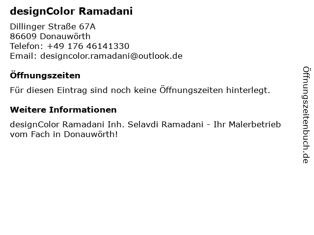 | Öffnungszeiten designColor Ramadani in Donauwörth anzeigen | |