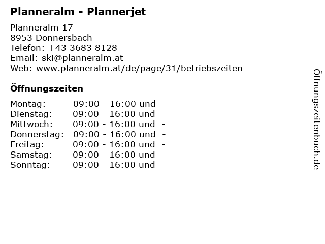 | Öffnungszeiten Planneralm - Plannerjet in Donnersbach anzeigen | |