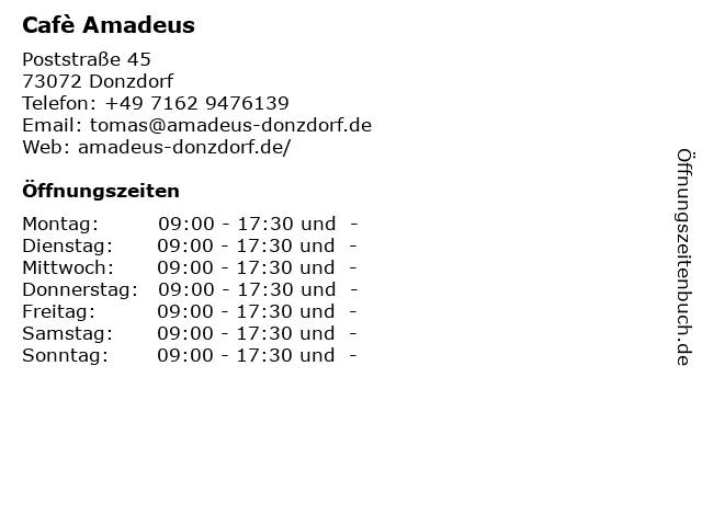 | Öffnungszeiten Cafè Amadeus in Donzdorf anzeigen | |