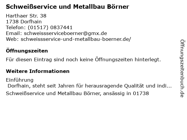 | Schweißservice und Metallbau Börner anrufen | |
