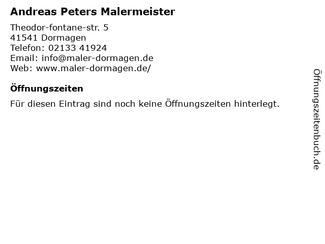 | Öffnungszeiten Andreas Peters Malermeister in Dormagen anzeigen | |