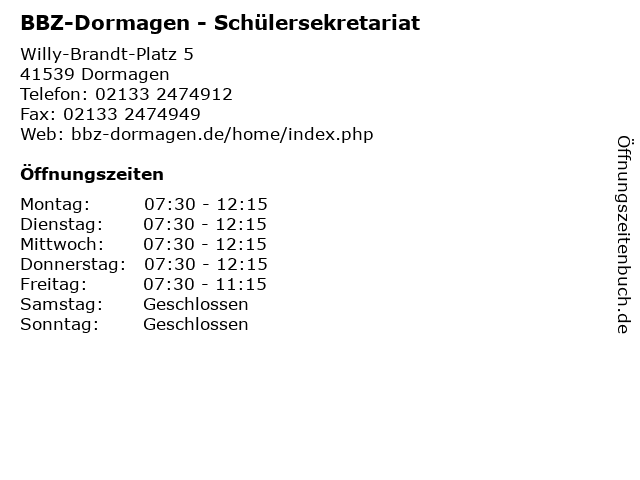 Branchen & Suchbegriffe zu BBZ-Dormagen - Schülersekretariat:bbz, berufsaufbauschulen, berufsbildungszentrum, berufsfachschule, berufsfachschulen, berufsgrundschulen, berufskolleg, berufsschule, fachschule, gewerbliche, handelsschulen, kaufmännische, schulen, schülersekretariat, technikerschulen |