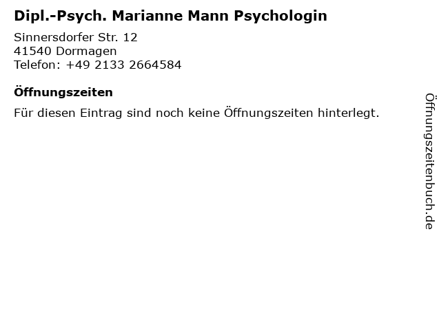 | Dipl.-Psych. Marianne Mann Psychologin anrufen | |