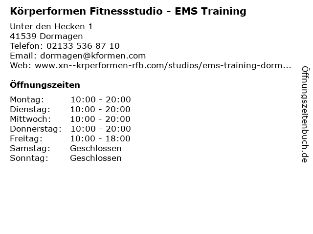 3 Das Studio Schwarz und Weber GbR Fitnessstudio (Entfernung: 3,31 km) Krischerstr. 56, 40789 Monheim am Rhein 4 Körperformen Monheim - EMS Gesundheitsstudio (Entfernung: 3,43 km) Mittelstrasse 4, 40789 Monheim am Rhein 6 |
