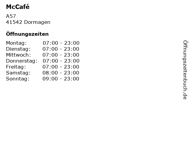 | Öffnungszeiten McCafé in Dormagen anzeigen | |