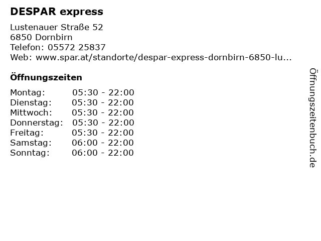 | Öffnungszeiten DESPAR express in Dornbirn anzeigen | |