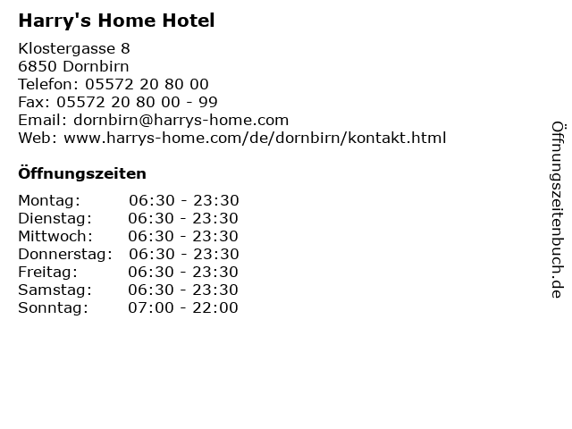 | Öffnungszeiten Harry's Home Hotel in Dornbirn anzeigen | |