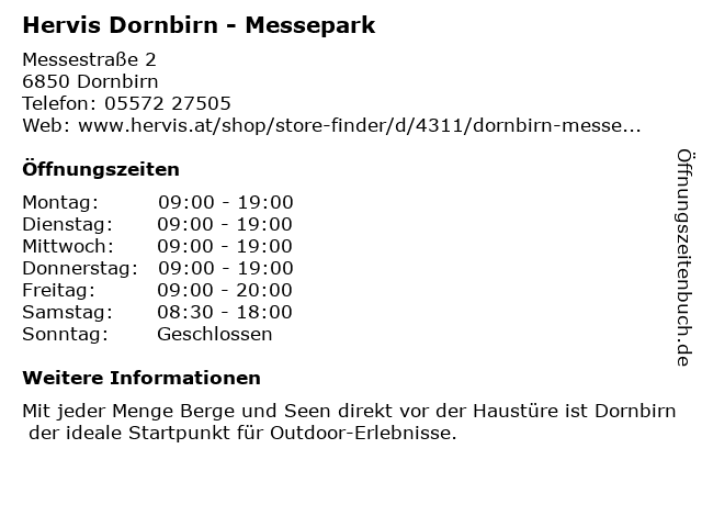 | Öffnungszeiten Hervis Dornbirn - Messepark in Dornbirn anzeigen | |