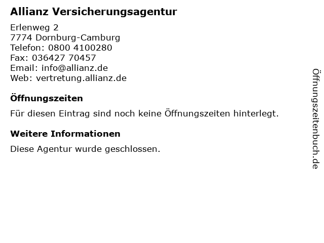 2 Allianz Versicherung Gunter Wolleschensky Generalvertretung (Entfernung: 0,73 km) F.-l.-jahn-straße 7, 07774 Dornburg-Camburg 3 Allianz Versicherung K und M Kraus oHG Generalvertretung (Entfernung: 7,17 km) Naumburger straße 114, 07743 Jena 4 R+V Versicherung Jena - Generalvertretung Marco Härzer (Entfernung: 7,24 km) Brückenstraße 16, 07743 Jena 6 Allianz Versicherung Stefan Lohse Generalvertretung (Entfernung: 11,20 km) Leutragraben 2-4, 07743 Jena |
