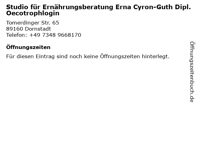 | Studio für Ernährungsberatung Erna Cyron-Guth Dipl. Oecotrophlogin anrufen | |