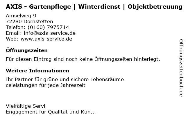 | AXIS - Gartenpflege | Winterdienst | Objektbetreuung anrufen | |