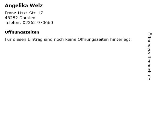 | Öffnungszeiten Angelika Welz in Dorsten anzeigen | |
