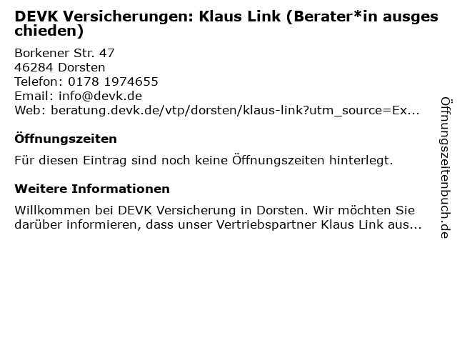 | DEVK Versicherungen: Klaus Link (Berater*in ausgeschieden) anrufen | |
