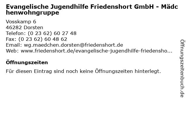 | Evangelische Jugendhilfe Friedenshort GmbH - Mädchenwohngruppe anrufen | |