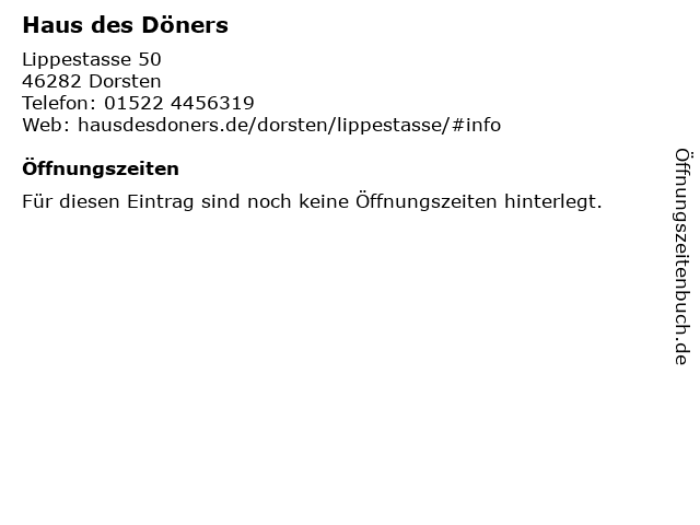 | Öffnungszeiten Haus des Döners in Dorsten anzeigen | |