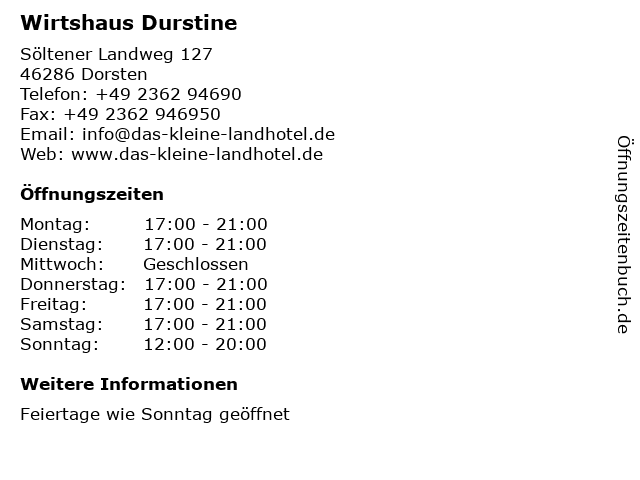 | Öffnungszeiten Wirtshaus Durstine in Dorsten anzeigen | |