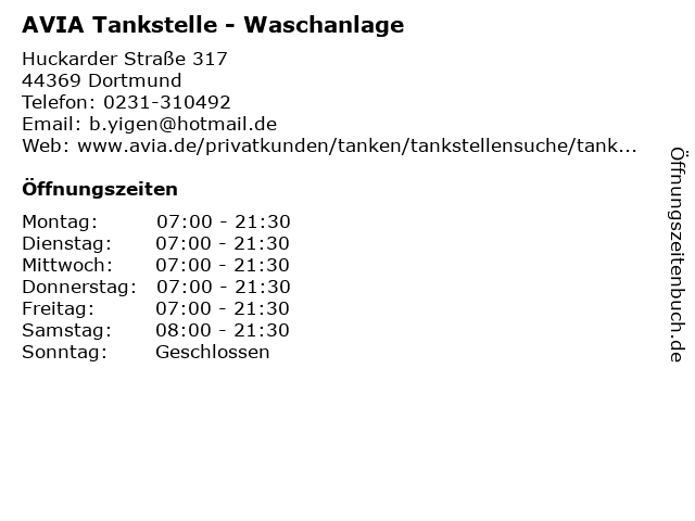 AVIA Tankstelle - Waschanlage in Dortmund | Telefonnummer, Öffnungszeiten und Adresse