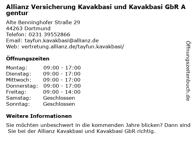 1 Allianz Versicherung Kavakbasi und Kavakbasi GbR Agentur (Entfernung: 25,76 km) Neufchateaustraße 2, 59077 Hamm 4 HUK-COBURG Versicherung Kevin Bunk in Dortmund - Hörde (Entfernung: 0,49 km) Hörder Semerteichstr. 187, 44263 Dortmund 6 |