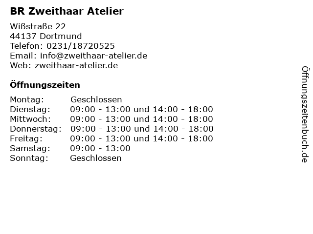| Öffnungszeiten BR Zweithaar Atelier in Dortmund anzeigen | |