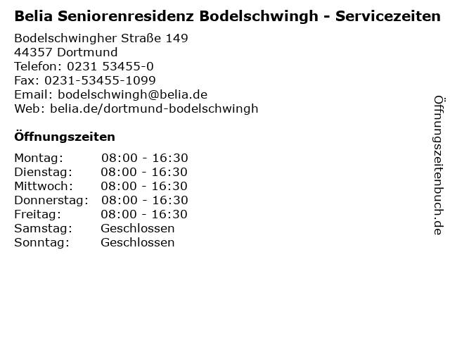 Branchen & Suchbegriffe zu Belia Seniorenresidenz Bodelschwingh - Servicezeiten:altenheim, altenpflege, belia, betreuung, bodelschwingh, seniorenresidenz, servicezeiten |