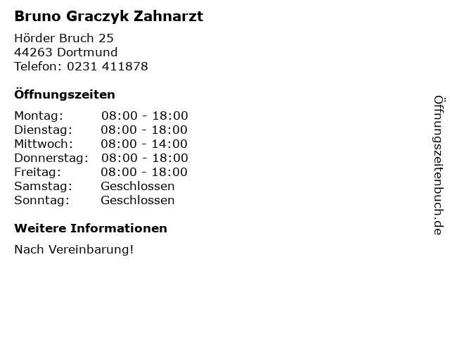 Öffnungs-/Sprechzeiten Bruno Graczyk Zahnarzt