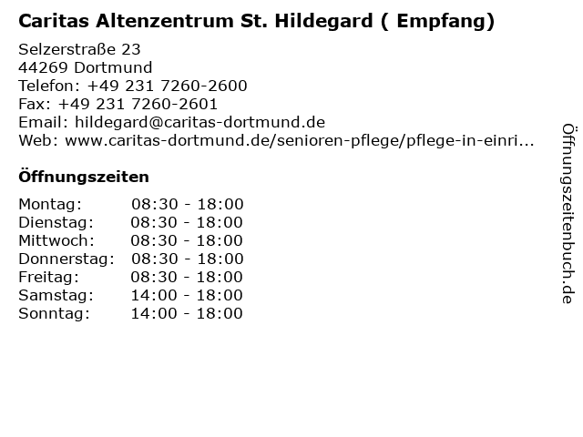 1 Caritas Altenzentrum St. Hildegard (Verwaltung) (Entfernung: 0,00 km) Selzerstraße 23, 44269 Dortmund 5 Fritz-Heuner-Heim Evangelisches Altenzentrum (Entfernung: 7,47 km) Stockumer Str. 274 -276, 44225 Dortmund 6 |