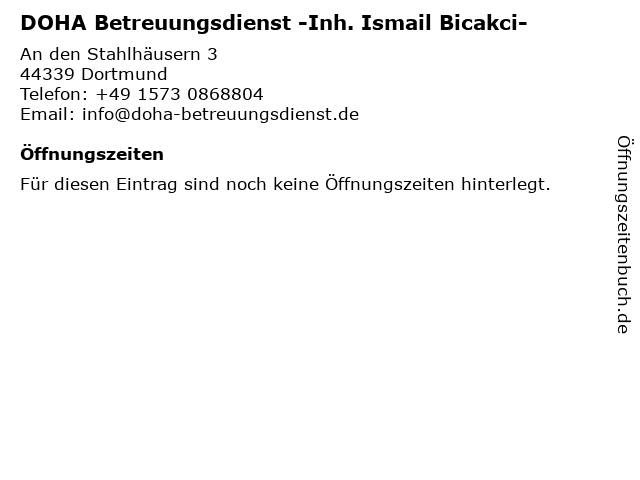 | DOHA Betreuungsdienst -Inh. Ismail Bicakci- anrufen | |