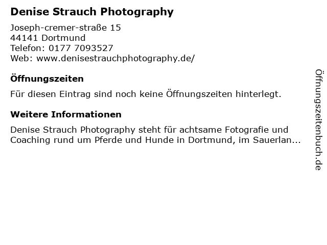 | Öffnungszeiten Denise Strauch Photography in Dortmund anzeigen | |