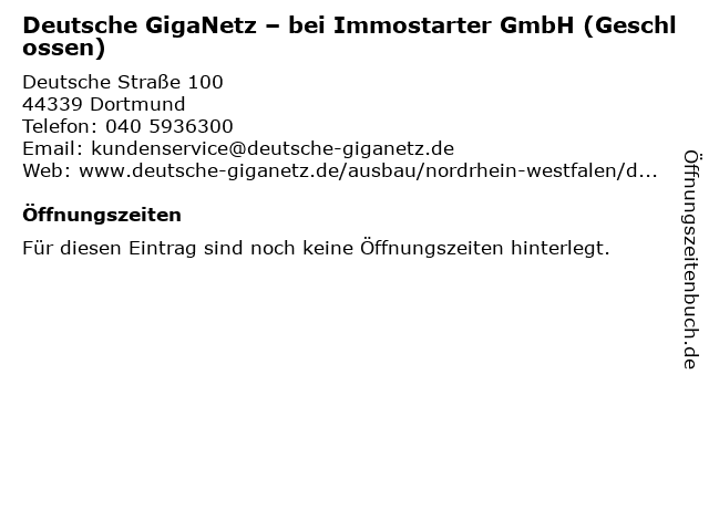 | Deutsche GigaNetz – bei Immostarter GmbH (Geschlossen) anrufen | |