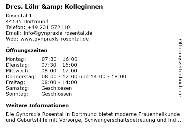 | Öffnungszeiten Dres. Löhr & Kolleginnen in Dortmund anzeigen | |