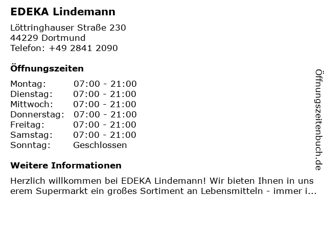 Öffnungszeiten EDEKA Lindemann in Dortmund anzeigen | |