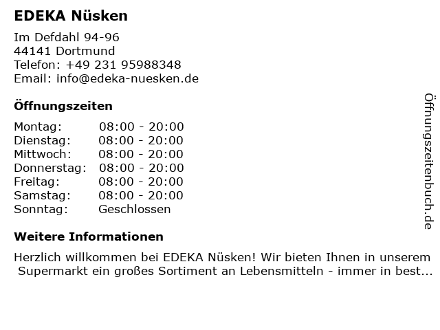 Öffnungszeiten EDEKA Nüsken in Dortmund anzeigen | |