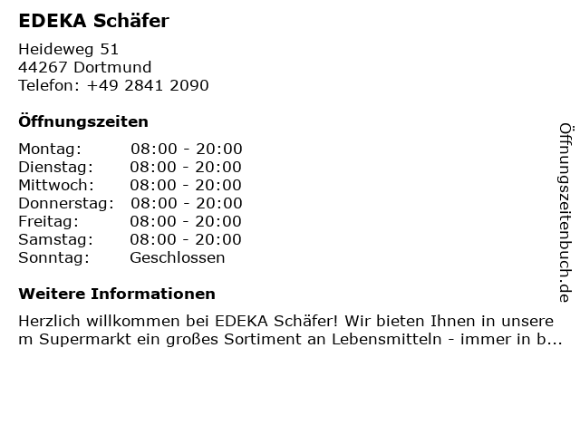 | Öffnungszeiten EDEKA Schäfer in Dortmund anzeigen | |