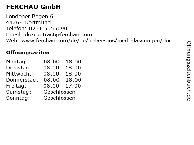 | Öffnungszeiten FERCHAU GmbH in Dortmund anzeigen | |