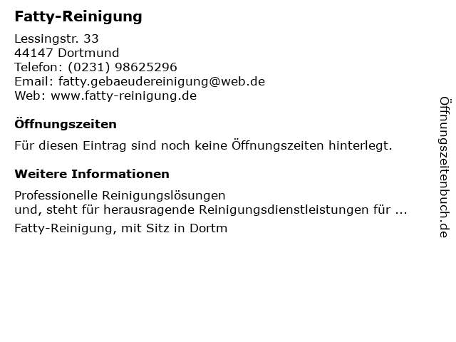 | Öffnungszeiten Fatty-Reinigung in Dortmund anzeigen | |
