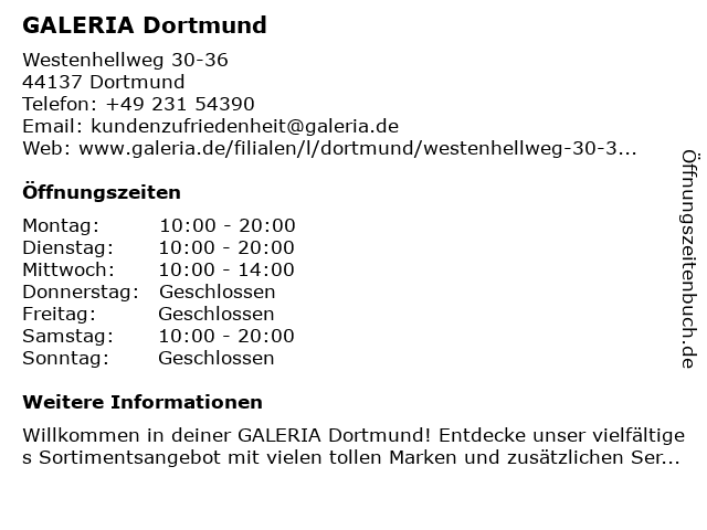 | Öffnungszeiten GALERIA Dortmund in Dortmund anzeigen | |