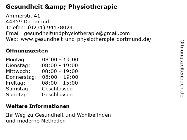 1 Bildungsinstitut für Soziales und Gesundheit (Entfernung: 2,56 km) Schieferbergstraße 45, 44577 Castrop-Rauxel 2 Institut für Schönheit und Gesundheit Ingrid Herbrand (Entfernung: 4,71 km) Dortmunder Str. 55, 44575 Castrop-Rauxel 3 Hebammenpraxis für Geburt & Gesundheit Hebammenpraxis (Entfernung: 6,58 km) Hospitalstr. 6, 44149 Dortmund 5 Lexamed DO-Hörde Praxis für Physiotherapie Gesundheit und Wohlbefinden (Entfernung: 12,02 km) Am Oelpfad 1-3, 44263 Dortmund 6 |
