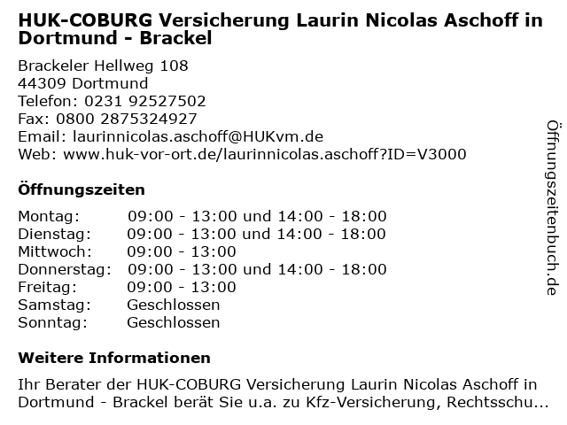 1 HUK-COBURG Versicherung Heiko Kronsbein in Dortmund (Entfernung: 0,01 km) Brackeler Hellweg 108, 44309 Dortmund 6 |