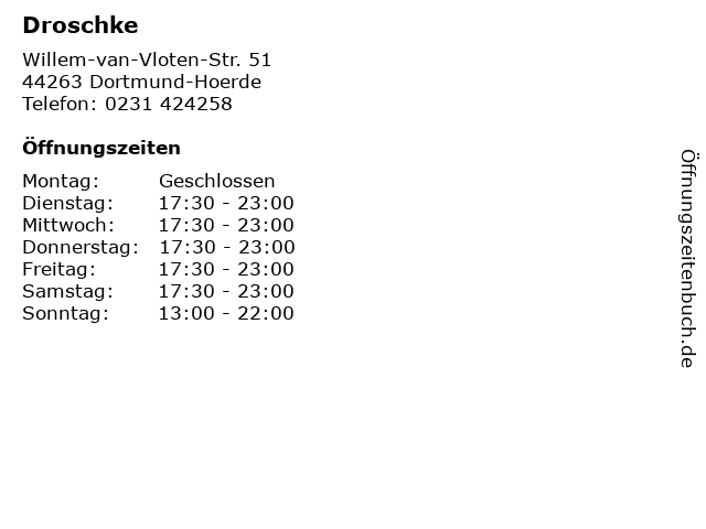 | Öffnungszeiten Droschke in Dortmund-Hoerde anzeigen | |